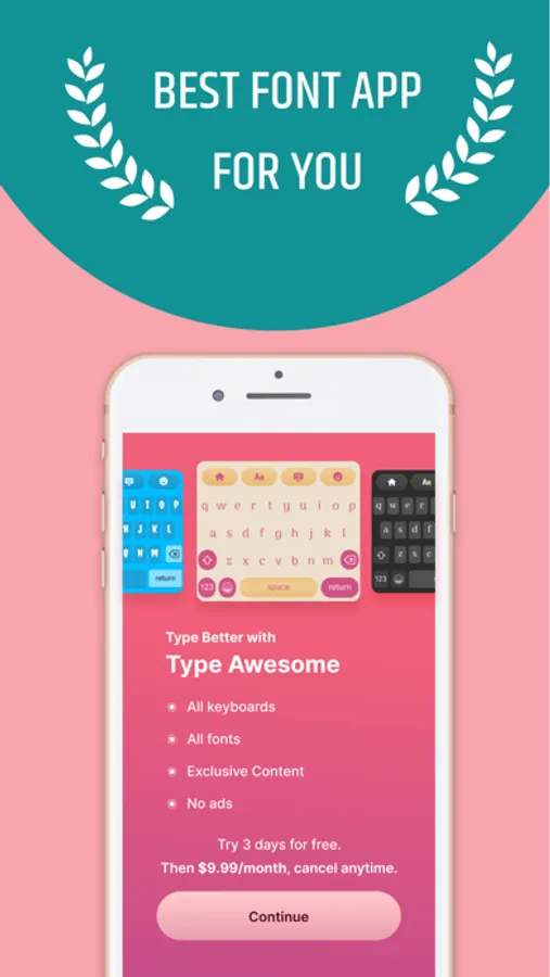 If you choose to purchase TypeAwesome plus with unlimited usage of fonts & keyboard, you will be charged a price according to your country. The price will be shown in the app before you complete the payment. This is a 1 time payment and you will receive unlimited content & keyboards in perpituity.