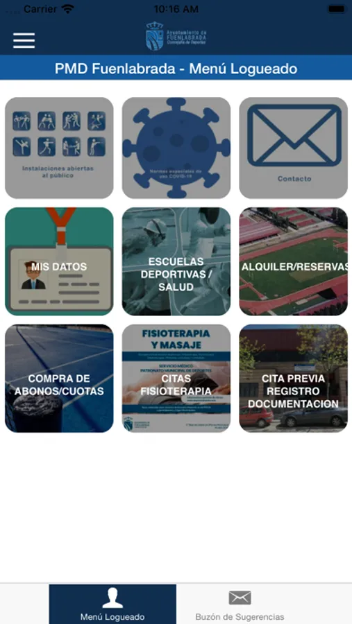 b) Usuarios logados. Una vez descargada la App en el smartphone o tablet, es posible logarse (con el mismo usuario y contraseña que en la Web) y dejar así la App personalizada de forma indefinida (no son necesarios posteriores logeos). Esto abre un segundo menú con las siguientes funciones (según configuración):