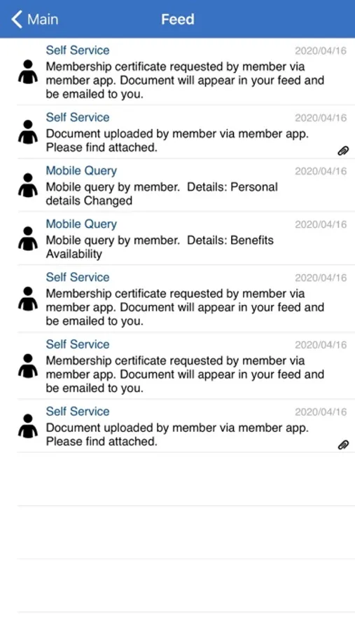 Information Feed: A list of all recent interactions between yourself and Cimas including calls logged and recent use of benefits.