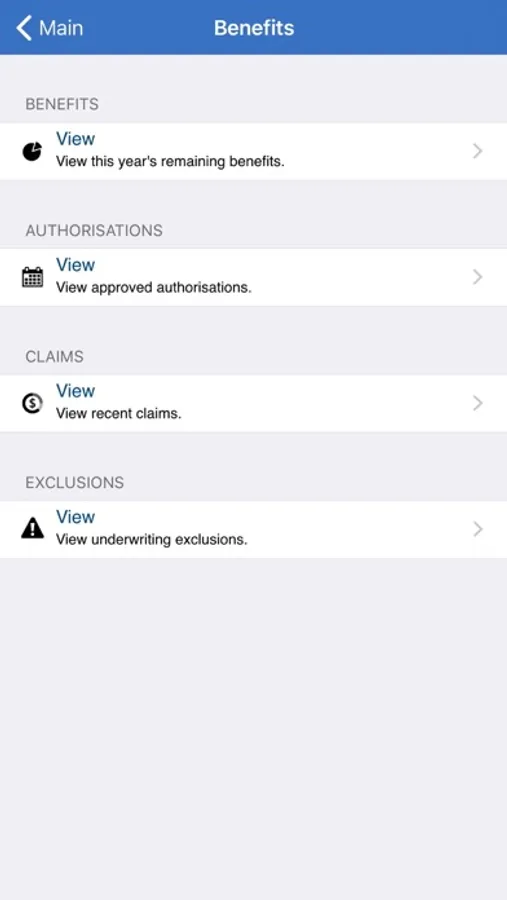 Benefits: Easy to read information of benefits and important information regarding access to the benefits.