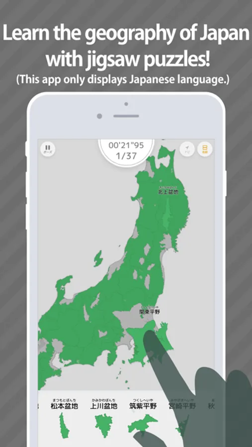 An educational puzzle game produced by Digital Gene. Memorize the geography of Japan through jigsaw puzzles in this educational game focused on enjoyment and good pacing.