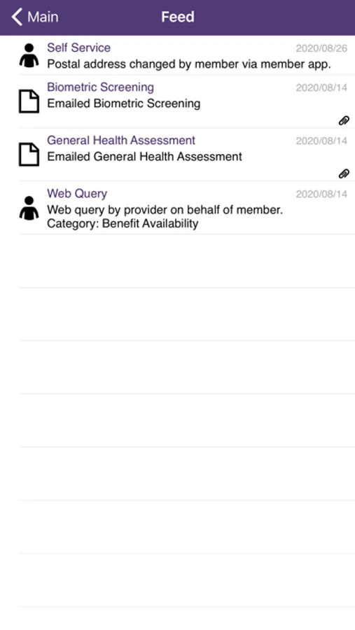 Information Feed: A list of all recent interactions between yourself and Healthguard including calls logged and recent use of benefits.