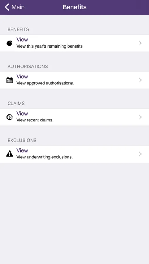 Benefits: Easy to read information of benefits and important information regarding access to the benefits.