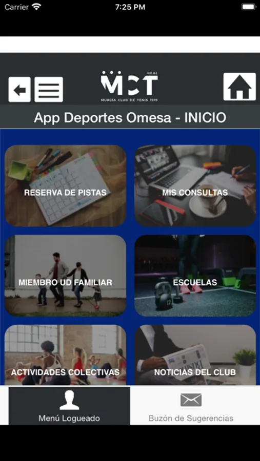 b) Usuarios logados. Una vez descargada la App en el smartphone o tablet, es posible logarse (con el mismo usuario y contraseña que en la Web) y dejar así la App personalizada de forma indefinida (no son necesarios posteriores logeos). Esto abre un segundo menú con las siguientes funciones (según configuración):