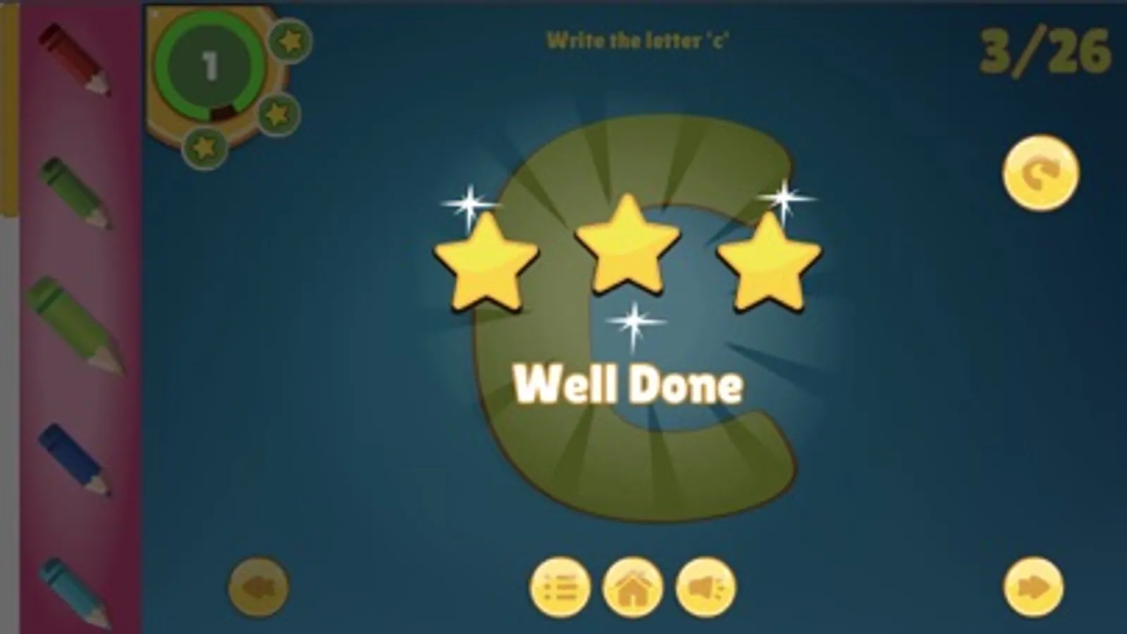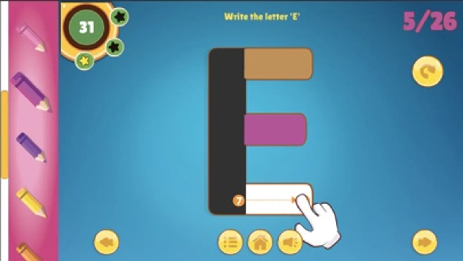 English Tracing Game is more than just a user-friendly educational app, it was designed with adult participation in mind, too. The interface keeps focused on alphabet reading and writing, tucking menu commands away from moving fingers.