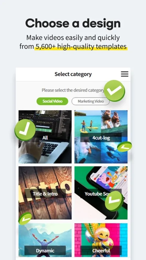 It is simple to use but creates high-quality output. Produce professional-level videos by simply using high-quality video templates produced by current TV commercial video design professionals. You can make videos suitable for various social media uploads (TikTok, YouTube, and Instagram) or marketing videos.