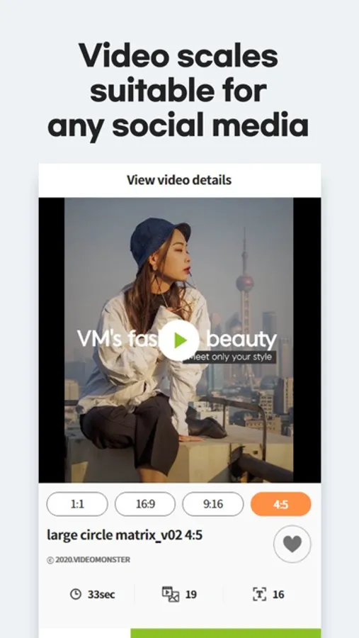 Adjust the video scale/size to fit the social media outlet of your choice. You can easily adjust the scale/size of the video optimized for each social media outlet such as TikTok, Instagram, Facebook, and YouTube. Share your story with friends! 3 minutes completion with an easy UI. video editing app the world has never seen before - VideoMonster!