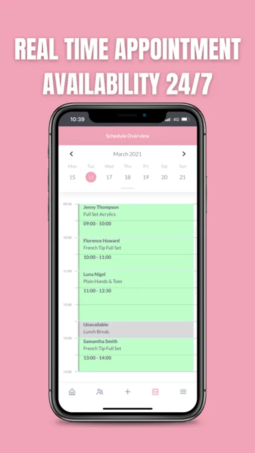 Our easy online booking system allows you to have full control over your digital diary by managing your own working hours, breaks & services. While clients are able to access real-time availability & book their own appointments through your unique booking link.