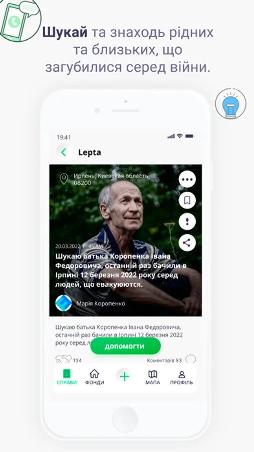 бачити, хто і де потребує на допомогу навколо тебе - завдяки зручному картографічному сервісу;