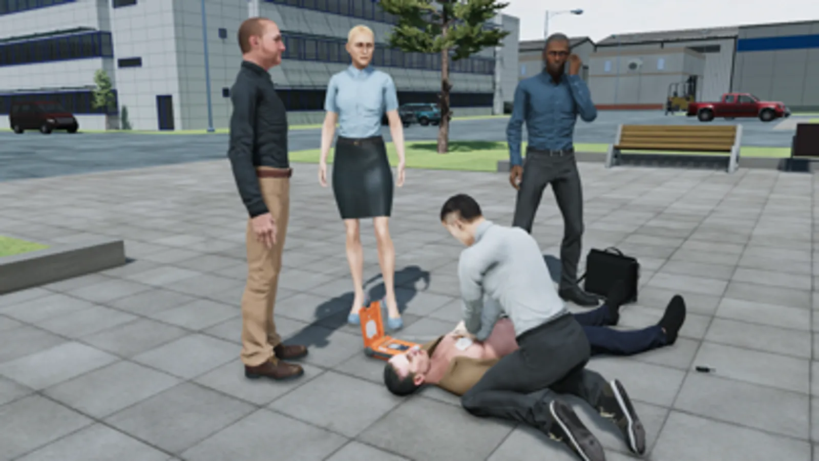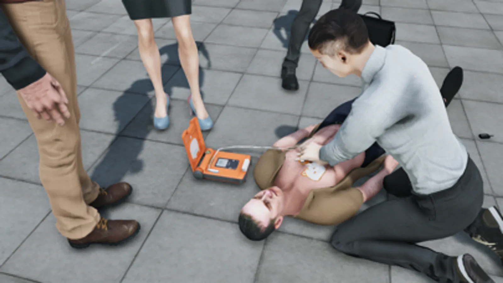 With the support of the Powerheart® G5 AED you will perform CPR and help saving a life in virtual reality. You will have to kneel down and perform CPR on a dummy. You may want to use a manikin (“Rescue Annie”) or firm pillow for this.