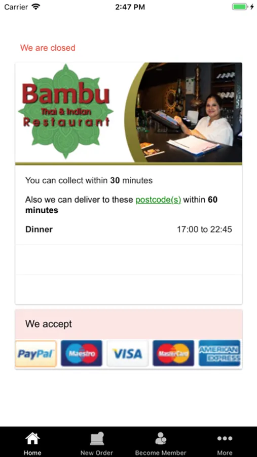 Everyone claims to provide the best food around...whether it’s Indian or Thai. We, on the other hand, don’t make such a claim, but we urge all curry lovers to give us a try and judge for yourself. With regard to the culinary offering, Bambu's outstanding menu has been overseen by none other than our Curry Chef. Our Chef combines his own exotic creation with classical ingredients to create some mouth-watering dishes, using the finest and authentic spices and herbs. All our food is freshly cooked on the day every day and delivered sizzling hot to your front door.