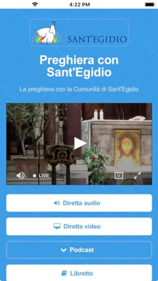 Questa app permette di seguire in diretta la Preghiera con la Comunità di Sant'Egidio e di accedere ai podcast, al libretto della preghiera e dei canti