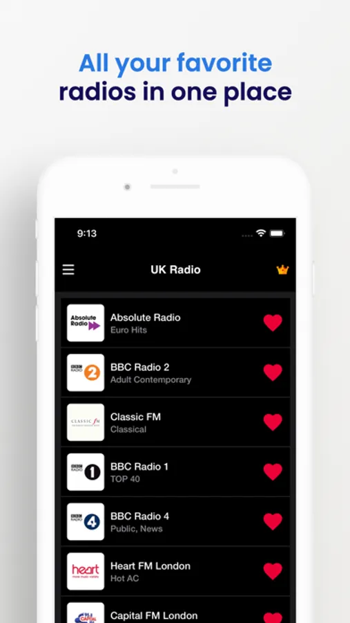 UK Radio includes the most popular Uk radio stations all together for faster, easier listening and for free. You can quickly enjoy your favorite UK radios by various categories in one click.