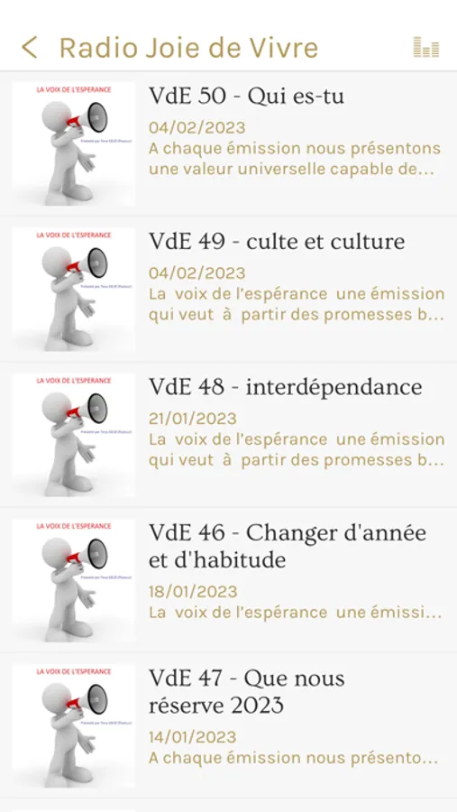 La radio Joie de Vivre, se veut être une radio thématique à vocation éducative dont les programmes visent à mettre en exergue les valeurs morales et humaines centrées sur la famille, la santé, l’environnement et le respect des institutions. Son rôle consistera à aider la Jeunesse et les autres tranches d’âges évoluant en Guyane à trouver la joie de vivre et à l’exprimer dans leur vie quotidienne.