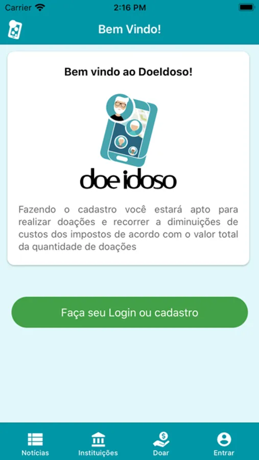 App para fazer doações a instituições de caridade que cuidam de idosos