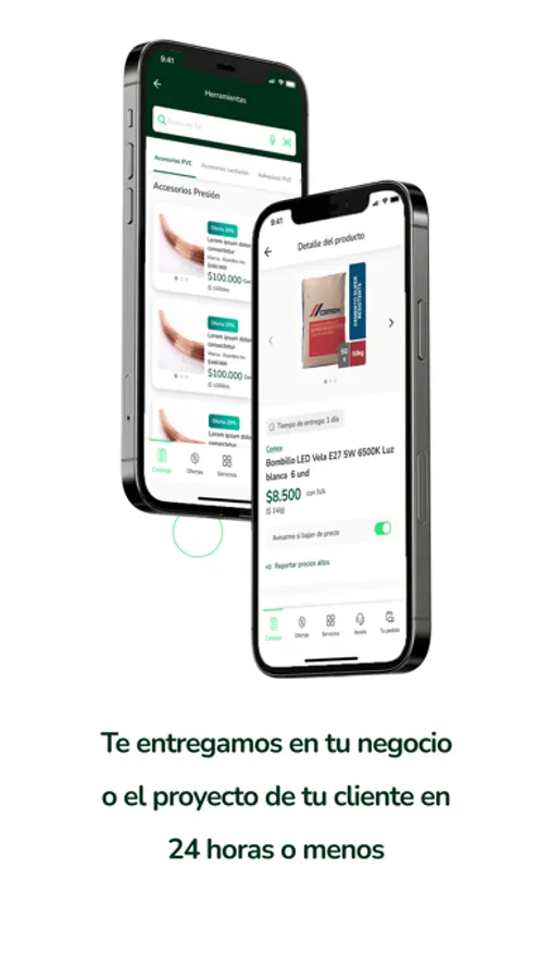• Comparación de Precios: Compara precios de varios proveedores en tiempo real para encontrar las mejores ofertas en materiales de construcción y ferretería.