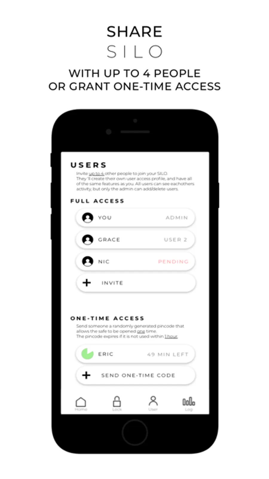 Share full access to your smart safe with up to three other people, send one-time access codes, and keep track of all activity directly from the SILO mobile app.