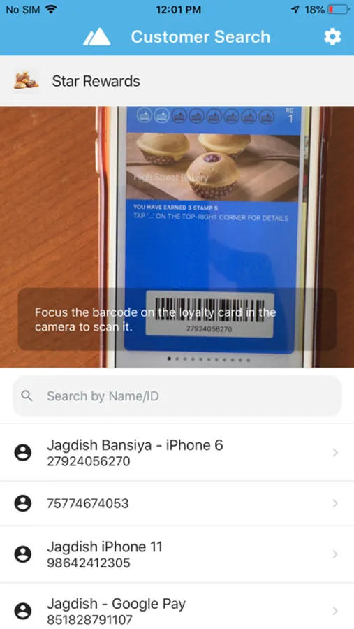 - To find customer, point phone's camera to the bar code/QR code displayed on customers' loyalty pass/card.