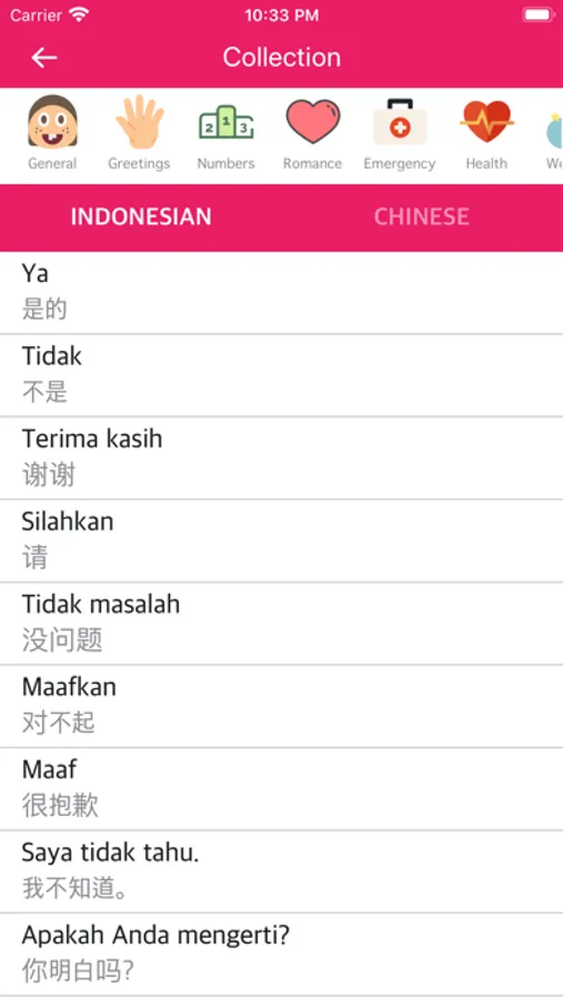 - Search option is working on both Indonesian - Chinese and Chinese - Indonesian directions.