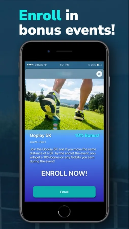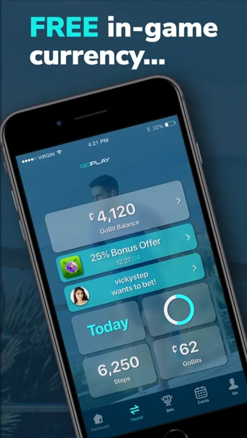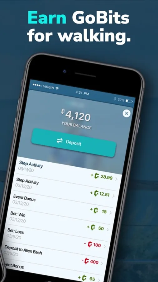 Goplay reads your HealthKit step data to generate GoBits. You'll earn 1 GoBit for every 100 verified step that you take.