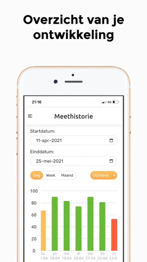 The StressCoach App gives insight in you stress level in different situations in only a few minutes a day.