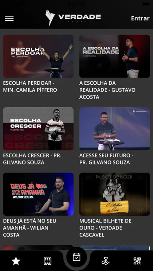 * "Conteúdos (Áudio/Vídeo): Permite visualizar e ouvir conteúdos da Igreja disponíveis no App;