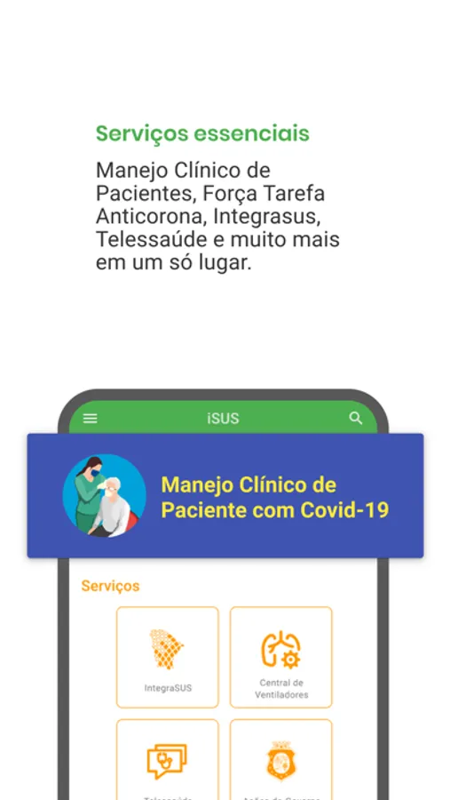 O iSUS é um produto digital criado para ser um cinto de utilidades e apoiar os profissionais do Sistema Único de Saúde (SUS) no combate ao Covid-19, diante de desafios de urgência, emergência e proteção à vida.