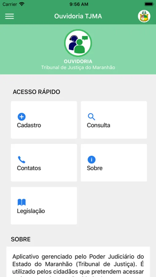 Aplicativo gerenciado pelo Poder Judiciário do Estado do Maranhão (Tribunal de Justiça). Consiste em mais um canal de acesso à Ouvidoria. Nele você pode cadastrar sua demanda, consultar o processamento da mesma e obter outras informações sobre a Ouvidoria.