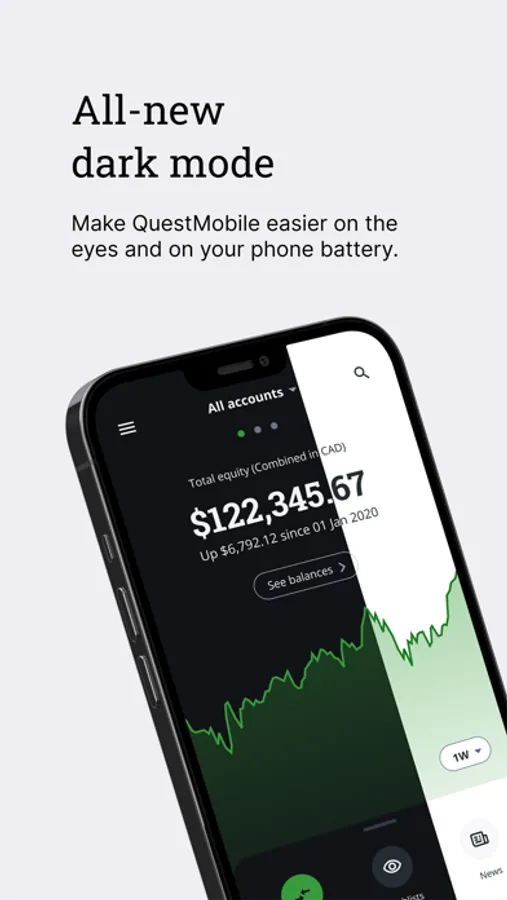 You can also use the app to invest in a pre-built diversified portfolio of ETFs managed by experts through Questwealth Portfolios. This is a service provided by Questrade Wealth Management Inc.