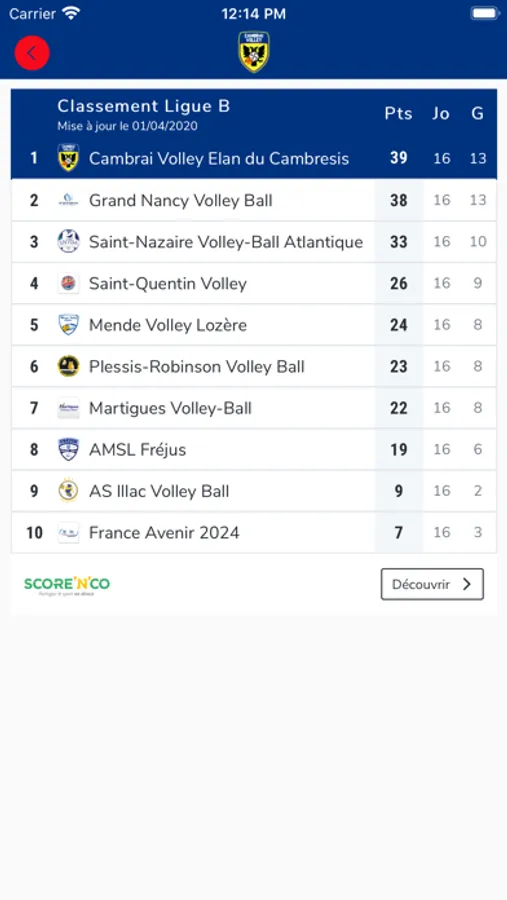 Aux résultats et classements de toutes les équipes du Cambrai Volley,