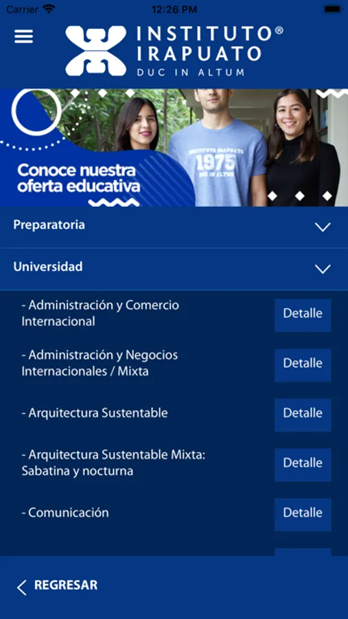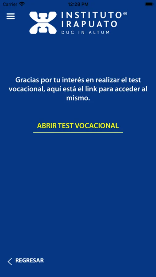 La app del Instituto Irapuato es un encuentro para comunidad de alumnos, egresados, docentes y administrativos, además de ser un medio de identificación y comunicación institucional a través del envío de notificaciones, encuestas y mensajes. Esta aplicación te invita también a conocer la oferta educativa y te acompaña en el proceso de ingreso a bachilleratos, carreras, maestrías y educación continua, a su vez te ofrece un espacio para conocerte a través de un test vocacional gratuito.