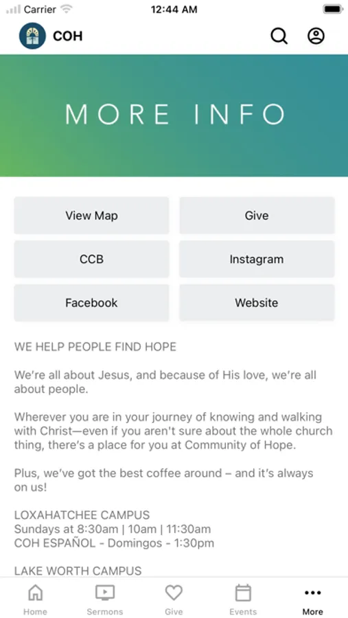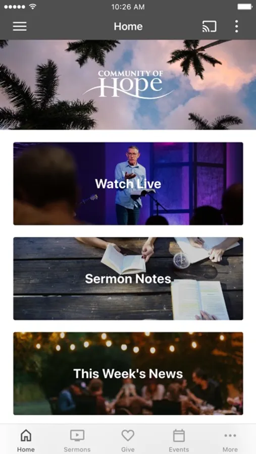 The Community of Hope App features sermons, music, and media content from Community of Hope church in Palm Beach County, FL.