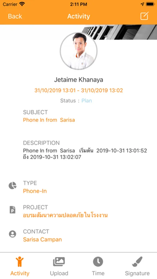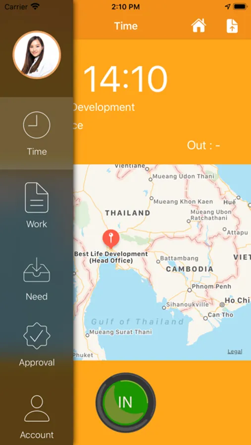 - Time stamp เป็นเมนูสำหรับให้ผู้ใช้งานสแตมป์เวลาเข้างานและเวลาออกงาน แค่เพียงกดสแตมป์เวลาผ่านแอปพลิเคชั่นนี้ และในระหว่างการสแสตมป์เวลาผู้ใช้สามารถถ่ายรูปตัวเองเพื่อยืนยันเวลาการเข้าหรือออกงานได้อีกด้วย โดยเมื่อผู้แสตมป์เวลาเข้าหรือออกงานสำเร็จระบบจะทำการแจ้งเตือนเวลาเข้าหรือออกงานผ่านทาง Line Notify