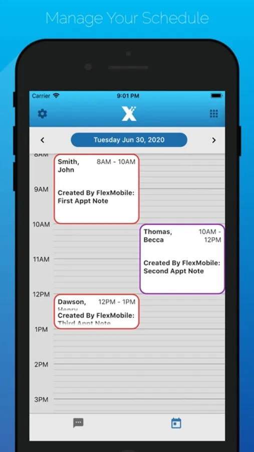 Flex's mobile app helps you manage your practice from wherever you are — all your patient text messages and full Open Dental schedule are just a tap away.