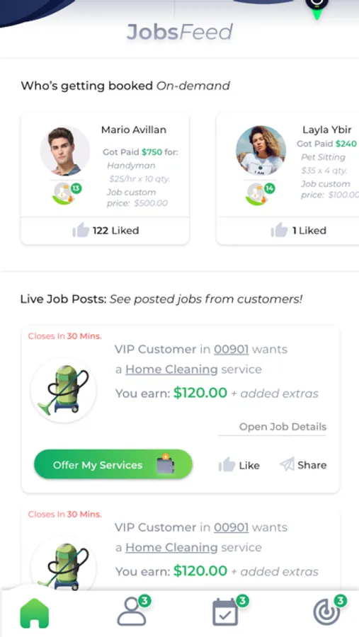 Whether you are a nail or makeup artist offering beauty services, or a freelance online service provider, you can sell your skills on our on-demand service provider marketplace. Anyone from handymen and electricians, to cleaners and maids, can create a profile and sell services on our offer services app. Get notified when a user request services like yours, send offers, get booked, and manage bookings and appointments all with Hallo helper.