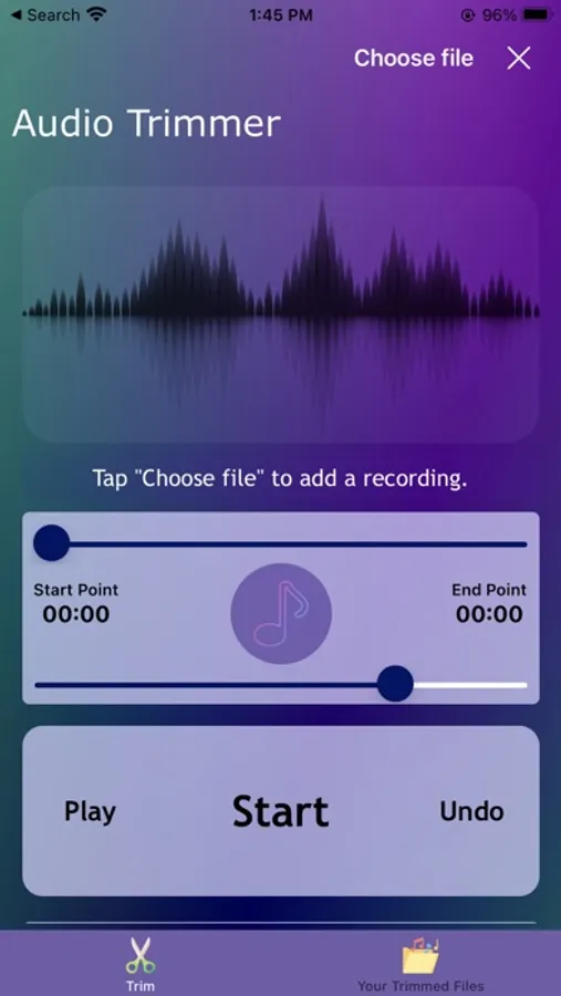 Cut, trim, and play audio recordings imported from the Files Manager.