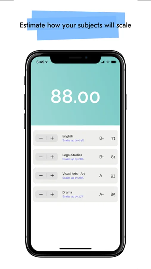 The ATAR and scaling shown are estimates only and are not a guarantee of the score you will receive.