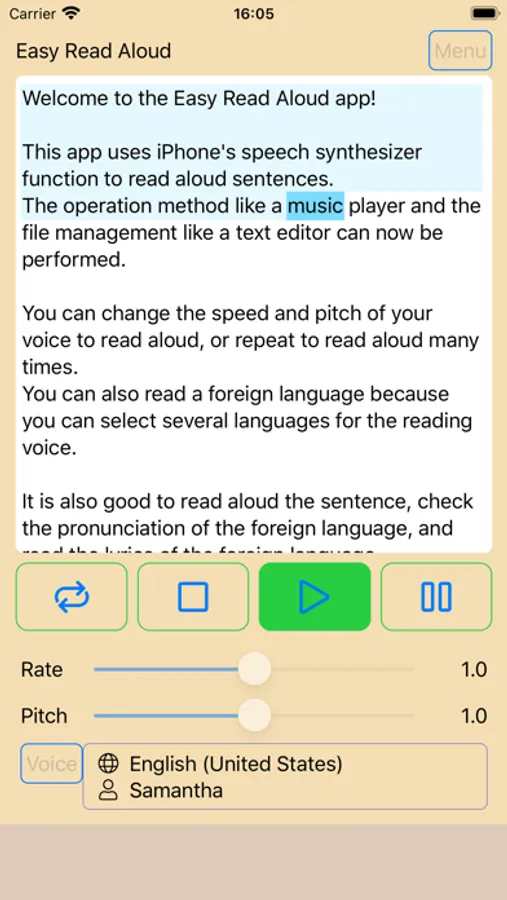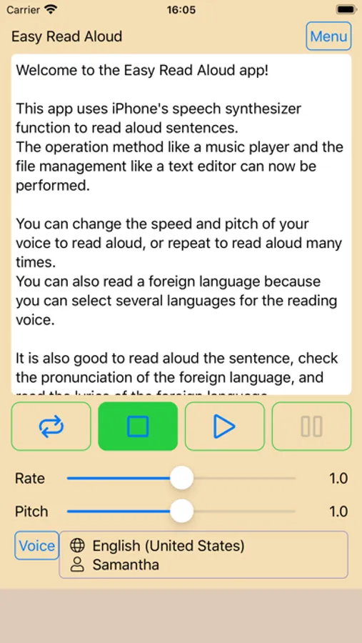 The text you enter will be read aloud. You can read aloud by changing the reading speed and pitch of the voice, or repeat and read aloud many times. It can be read aloud in the background, so it's great for listening to long sentences with earphones.