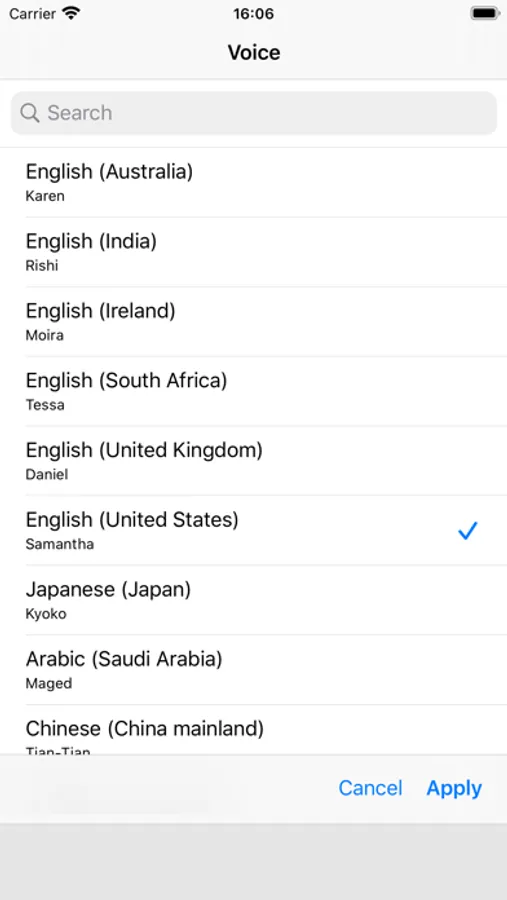 * Voice can be managed in "Accessibility > Spoken content > Voices" of the device's Settings app.