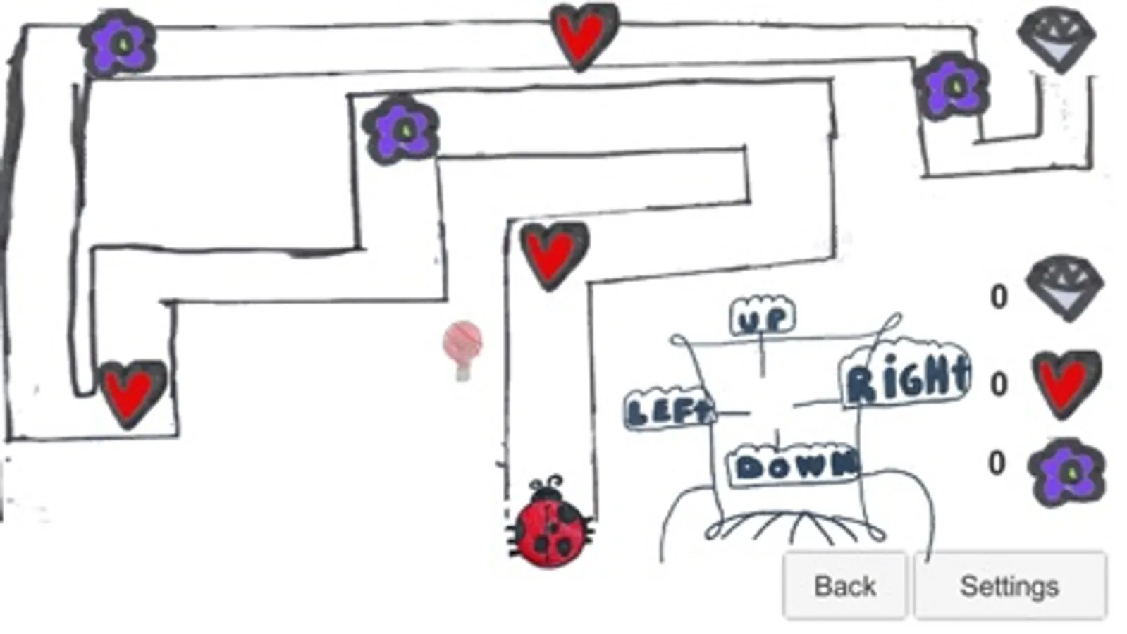 Make the bug pass through the maze by telling her to move: Up, Down, Left or Right.