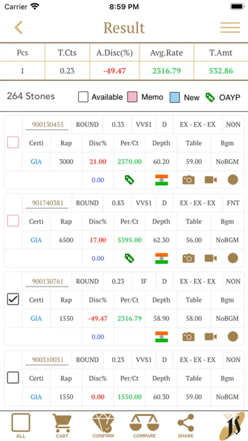 • Add selected diamonds to your cart by clicking “Add To Cart” or “Confirm” options.