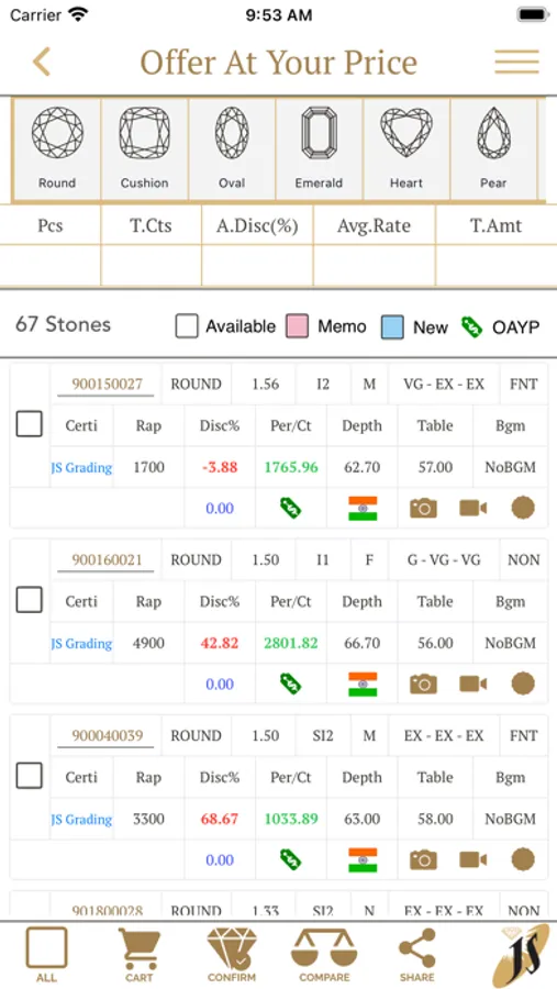 With "Jewel Star" mobile app users can buy diamonds online. This application provide reach user experience for buying diamonds online to Jewellery Retailers, Diamond Trader and End-Users. With this apps users can check 5000+ certified diamonds. Will also find all features regarding diamond Image, 360 Movie and certificate. User can easily share all property of diamond quick.