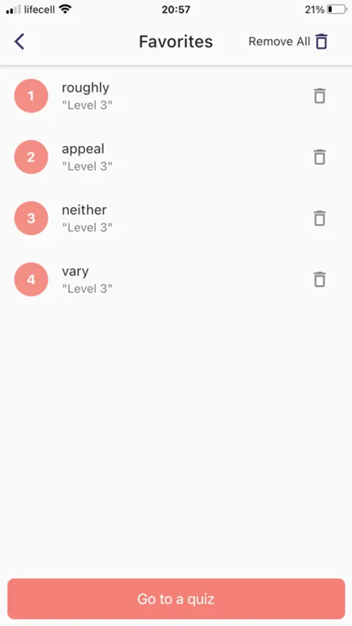 The application has 5000 the most frequently used English words divided into 5 difficulty levels: