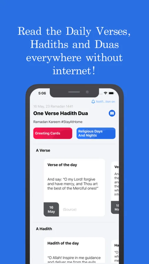 - If you wish, you can receive the verse and hadith notifications of the day at 10:00 every morning!