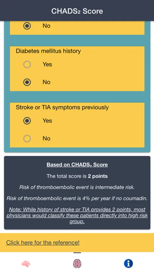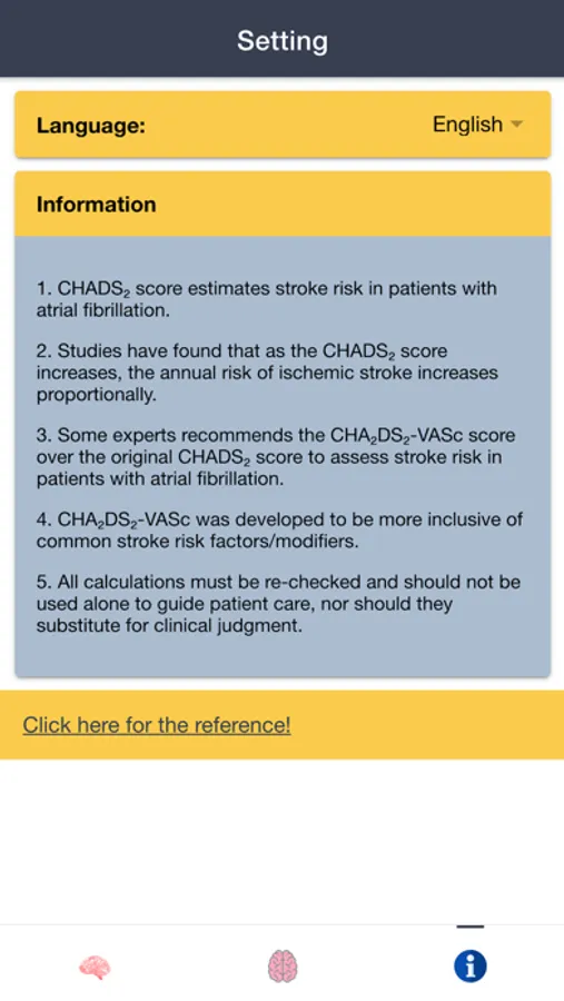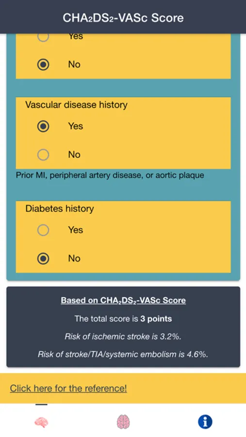 Disclaimer: all calculations must be re-checked and should not be used alone to guide patient care, nor should they substitute for clinical judgment. Calculations in this "AF Stroke Risk - Atrial Fibrillation Evaluation" app might be different with your local practice. Consult to expert doctor whenever necessary.