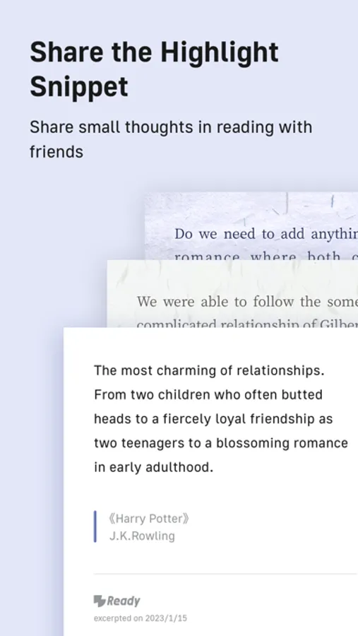 You're chatting with friends, getting push notifications, or browsing social networks, and you find an article that appeals to you, but you can't find the time to read it? Add it to Ready. With just one link, Ready can quickly load the full content and cache it locally, so you can get back to reading pleasure anytime, anywhere.