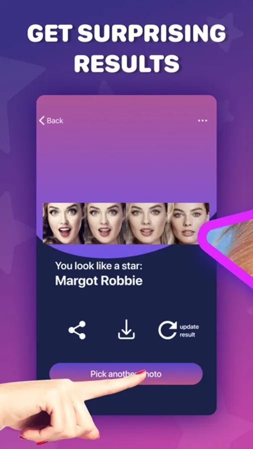 When you ask – who do I look like? The app replies. Get the answer to what celebrities do I look like and put those rumors to rest. See your A-list doppelganger right away – will it be Angelina Jolie, Saoirse Ronan, Emma Stone or someone else entirely?