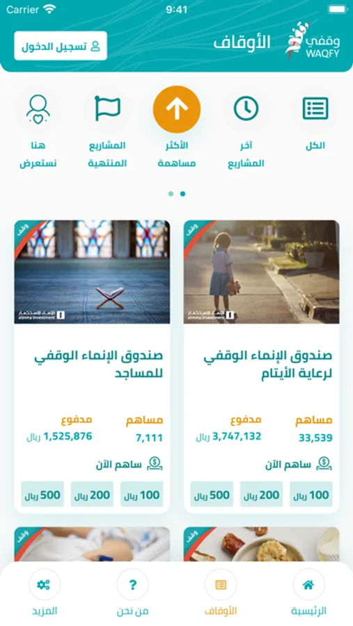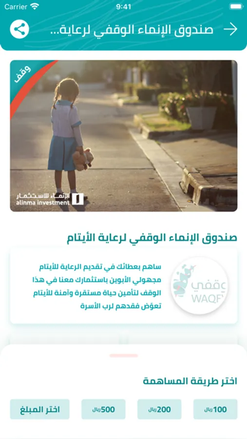 • تهدف المنصة إلى أن يبني المواطنين والمقيمين أوقافهم ومتابعتها عبر إنشاء أوقافهم أو المساهمة بحصص في المشاريع والمنتجات الوقفية