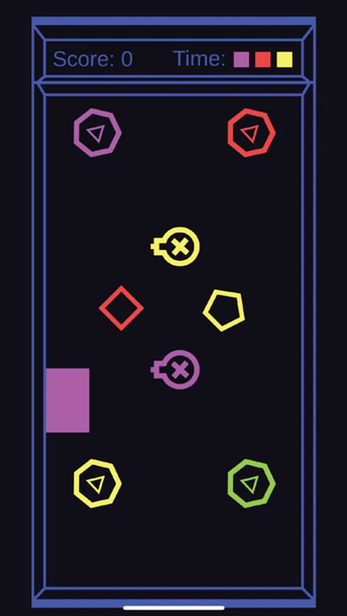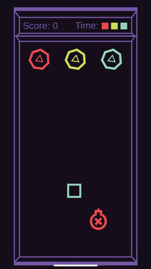 Match shapes by color. But be careful; make sure to avoid bombs and the walls! Challenge yourself to improve your reflexes and beat your high score!