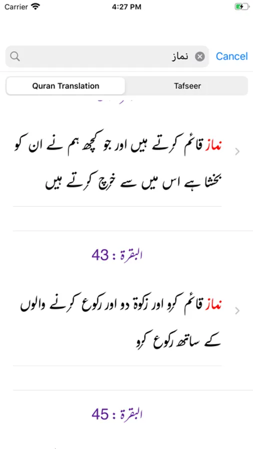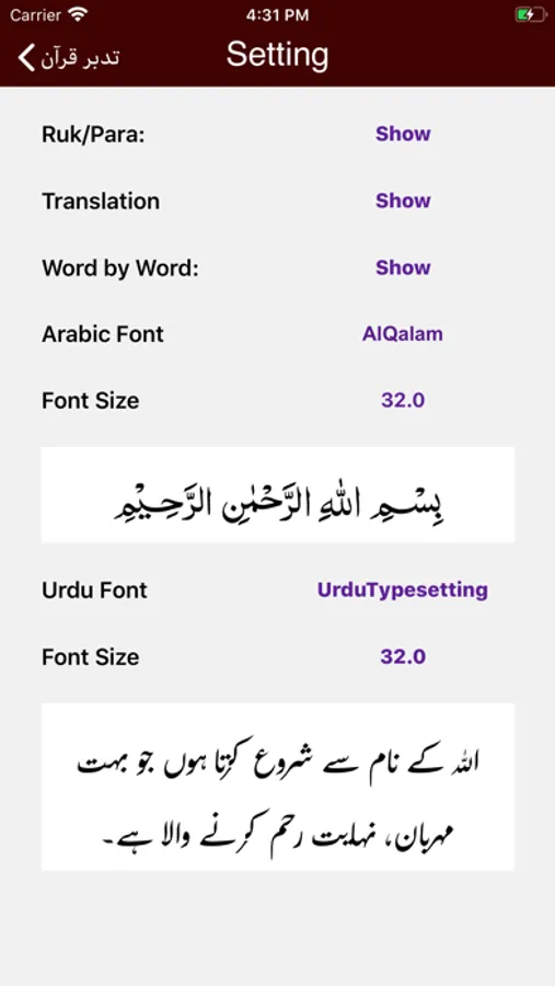 - Now user can Read full Sarah without translation in "Mushaf Mode"